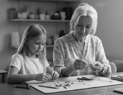At six years old, Nora learned to string her first beads at Scarlett’s workbench — a legacy passed down in whispers and gestures of care. (Photo: Echoes of Art)