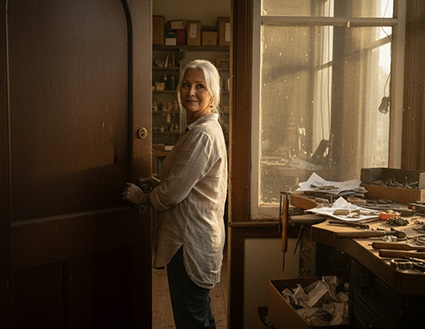 Scarlett closes the door to her sunlit workshop, leaving behind a lifetime of artistry and memories.(Photo: The Timeless Chronicle)The Final Collection — A Love Letter in Silver and Stone