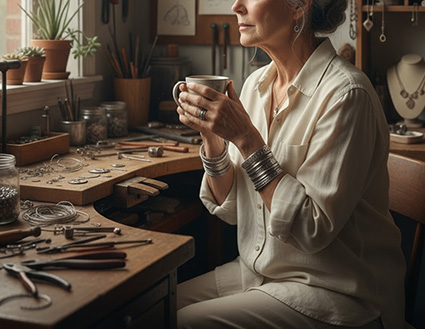 While algorithms decided what was “in,” she spent her days in a small wooden studio — shaping silver and stone into pieces that would never go out of style.